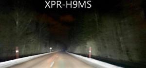 Ljusbild från en XPR-H9MS tagen med mobiltelefon. En H12MS lyser lika dant utåt sidorna fast mer ljus rakt fram än XPR-12M: