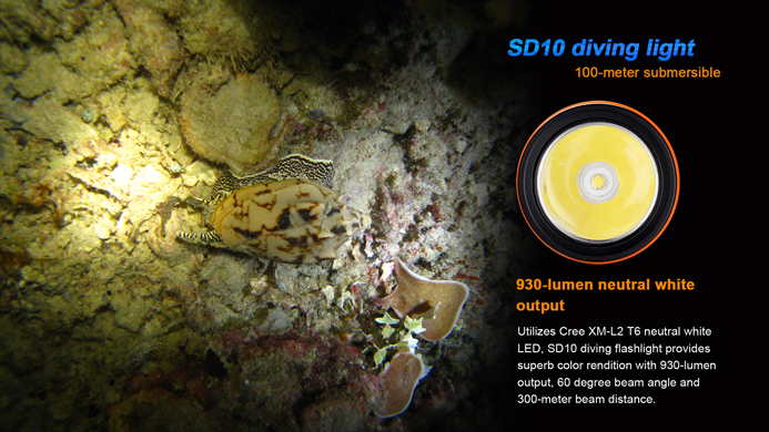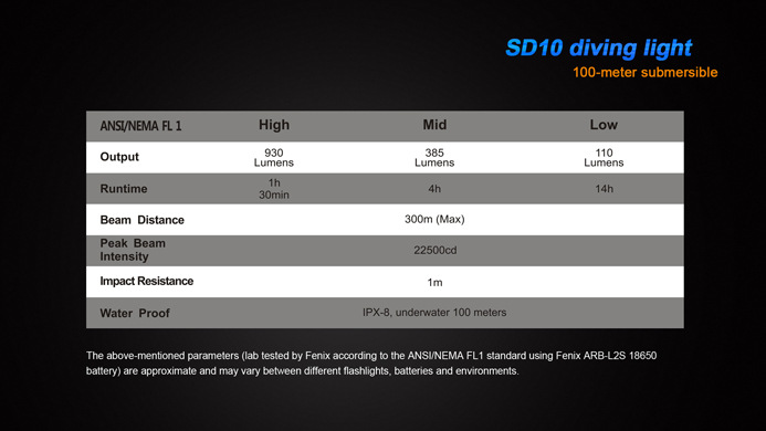 300m räckvidd - Vattentät till 100m djup - 930 lm